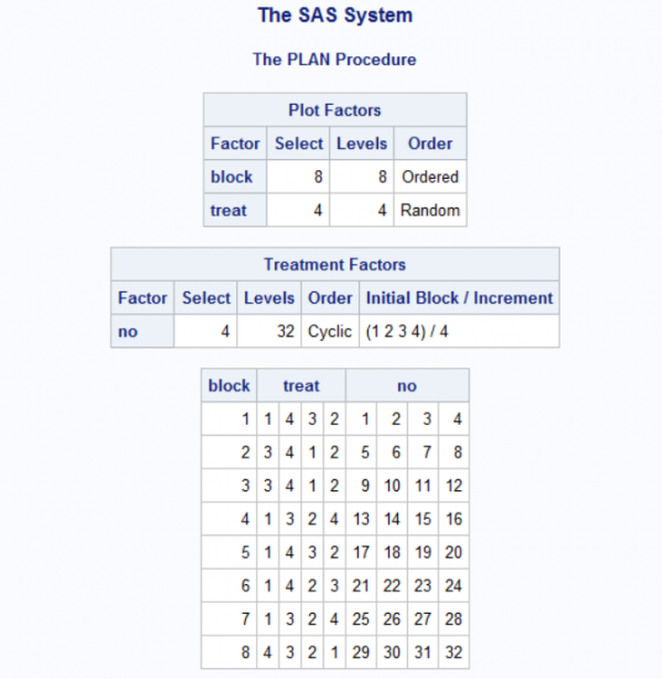Treatments no=4 of 32 cyclic (1 2 3 4) 4;