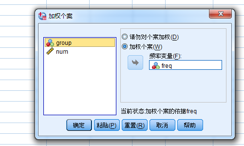 3.加权数据,对freq进行加权