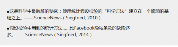 2016年3月,美国统计协会(ASA)正式发布了一条关于P值的声明:"The ASA's statement on p-values: context, process, and purpose",并提出了6条使用和解释P值的原则。