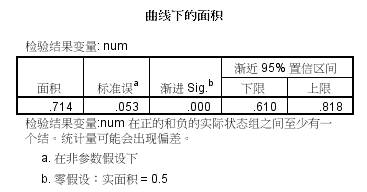 选择:分析——ROC曲线:将num选入检验变量,group选入状态变量,下方状态变量的值=1,表明研究对象为病例组。